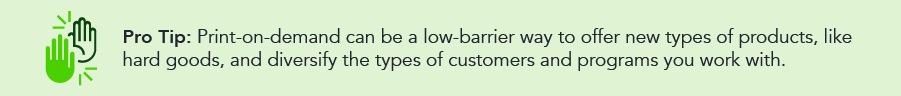 - Do more with less – Operating with a lean team or crunched for time? Print-on-demand is perfect for outsourcing orders during busy seasons.