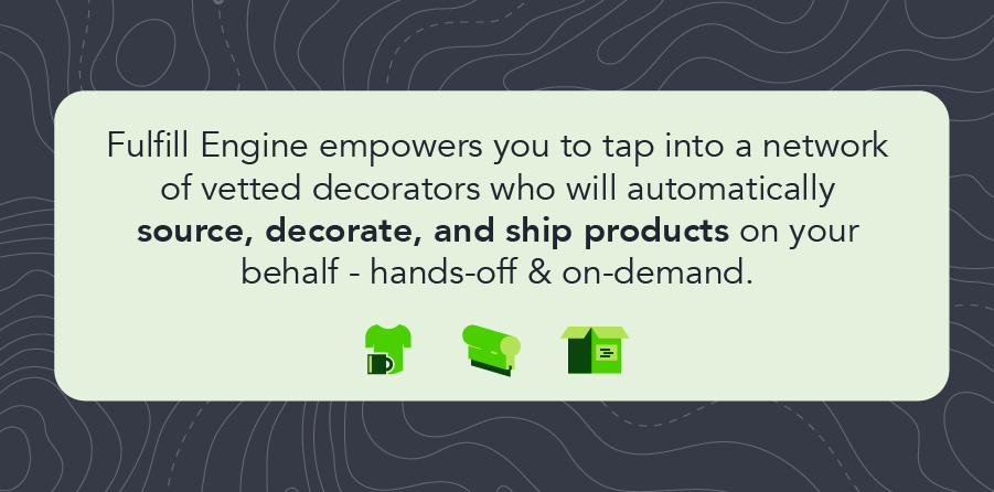 “I can’t compliment Fulfill Engine enough. As someone who’s doing most of the work by myself, being able to alleviate the backend fulfillment and shipping has been an absolute game-changer.” – Promotional Product Distributor