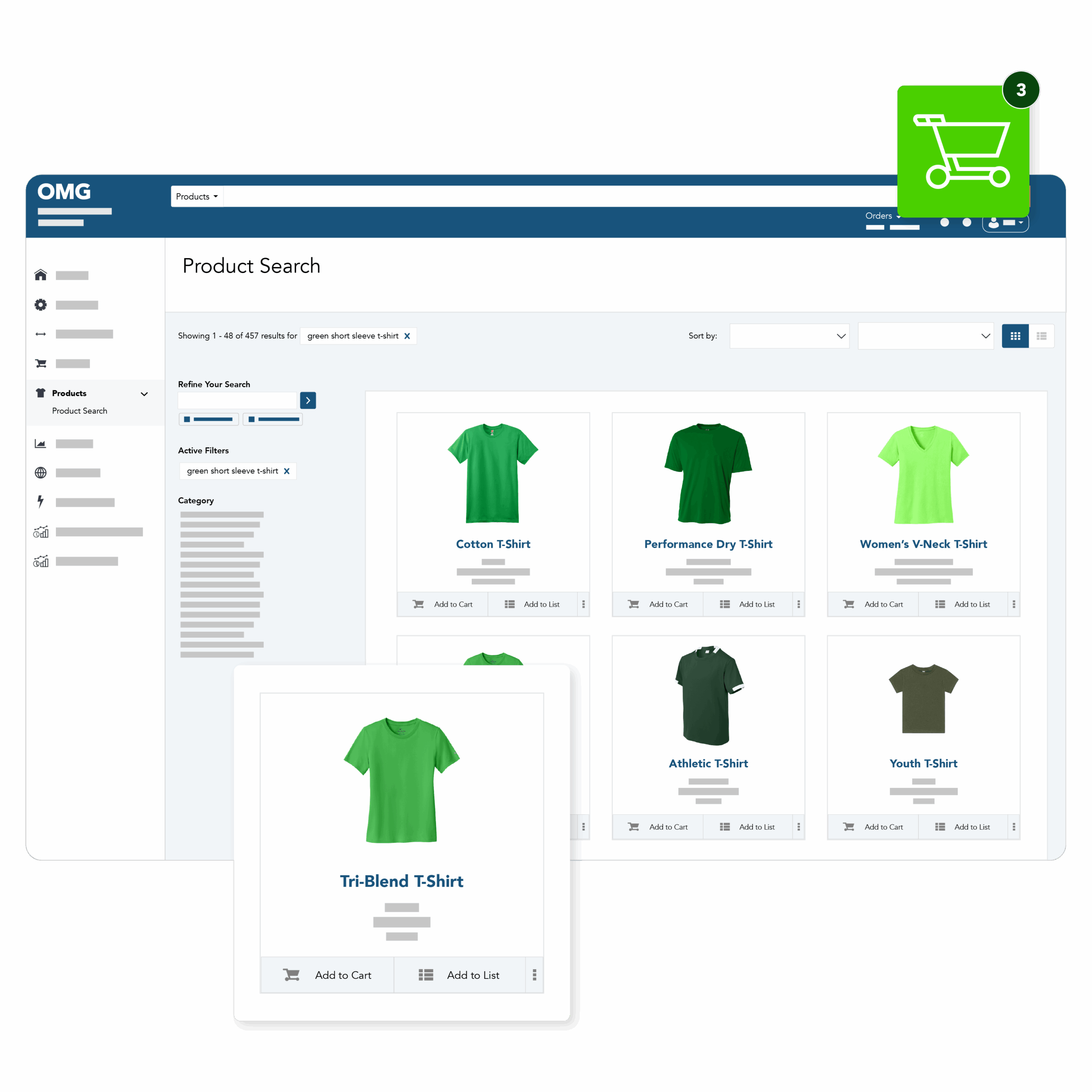 For suppliers, we provide product listing, digital advertising, PromoStandards data transformation, and websites. With OMG, suppliers can make their products available to thousands of distributors, decorators, and dealers actively searching for and selling products through OMG solutions.
