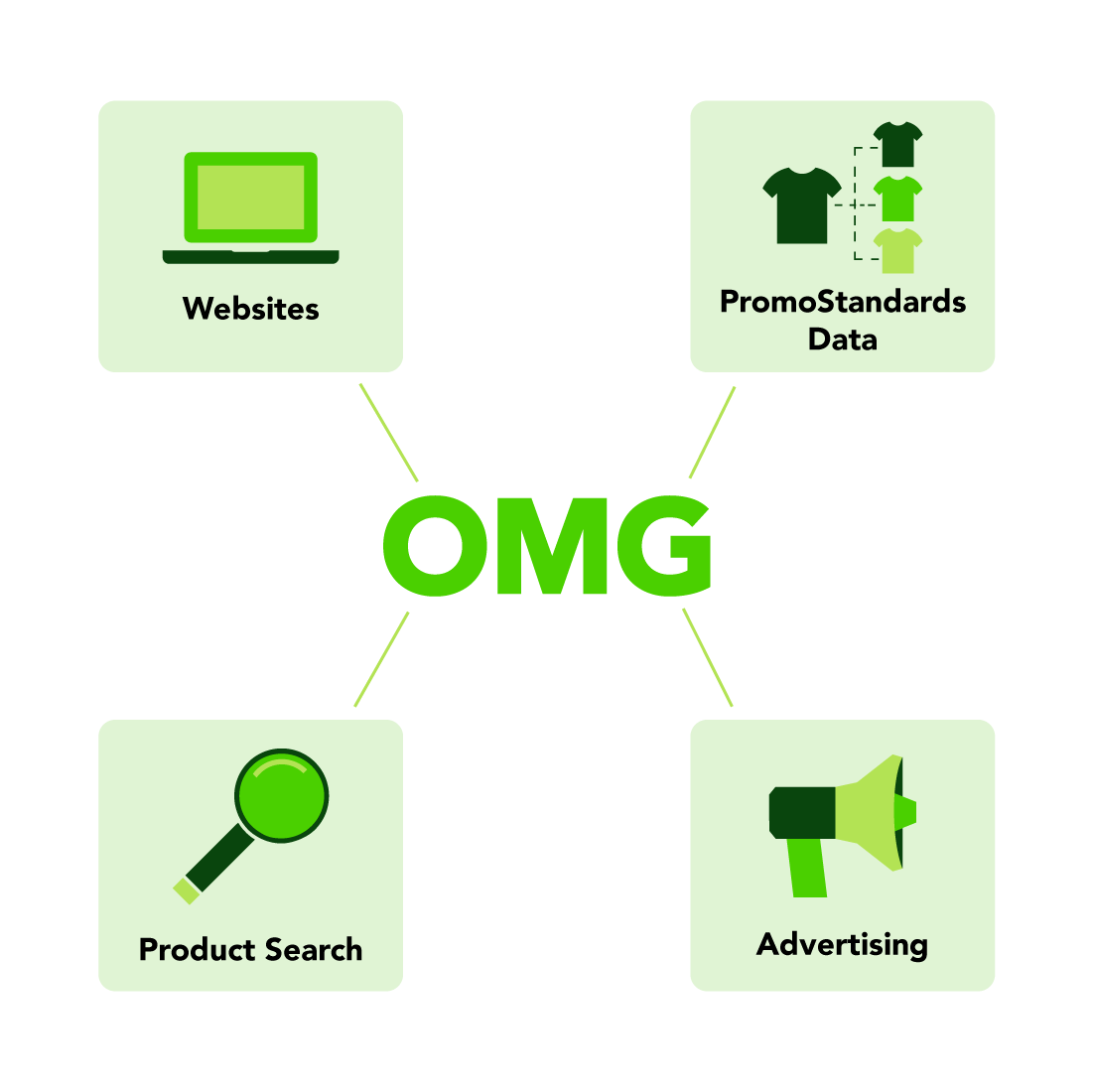 Between juggling multiple sales channels, disconnected tools, and business priorities, it’s hard to make your products available everywhere customers expect them to be. That’s where we come in. With OMG, you can get your products in front of thousands of promotional product distributors, apparel decorators, and team dealers in the tools they use every day to search, buy, and sell brandable products. OMG helps you become PromoStandards-compliant and share your products in more places so you can multiply your reach without multiplying your work.